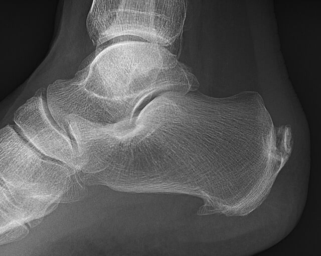 A veces se encuentra mediante radiografía un espolón calcáneo, que es un pico que se forma en la inserción de la fascia plantar. A primera vista parece un elemento dañino y que se puede clavar en la planta del pie, ya que esto coincidiría con el dolor tipo punzante de la fascitis. Aunque no necesariamente es algo malo.