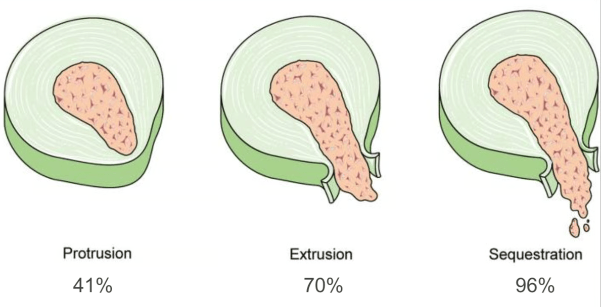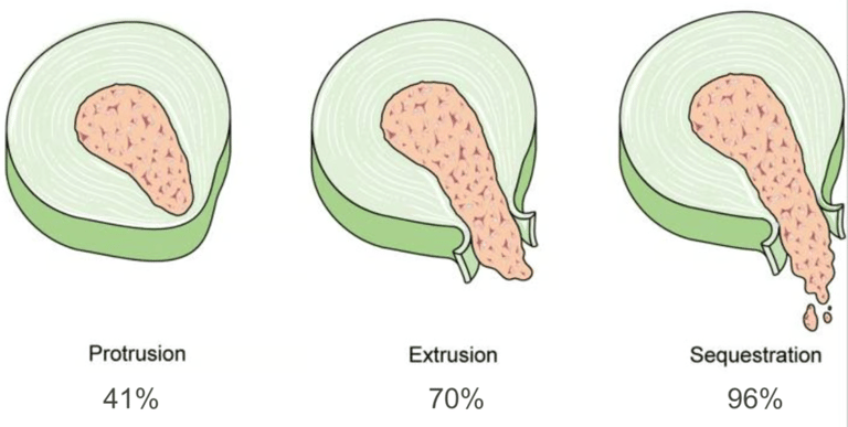 Tipo de hernia: las hernias extruidas o secuestradas (cuando el material se ha desplazado fuera del disco) tienen mayor probabilidad de reabsorción, ya que el sistema inmune puede acceder más fácilmente a ese tejido.