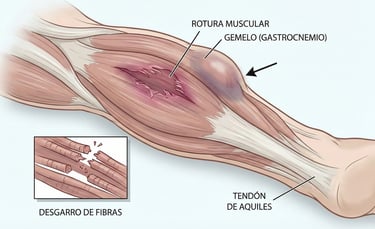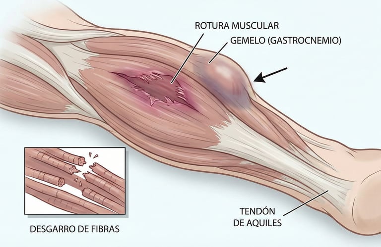 Una rotura muscular de gemelo es un desgarro de mayor o menor grado en las fibras del músculo gastrocnemio (interno o externo), que junto al sóleo forman el tríceps sural. Este desgarro puede ocurrir en el vientre muscular del propio gastrognemio o en la interfase con el sóleo.